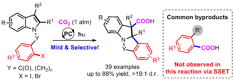 80.W.-J. Zhou,† Z.-H. Wang,† L.-L. Liao, Y.-X. Jiang, K.-G. Cao, T. Ju, Y. Li, G.-M. Cao, D.-G. Yu*, Reductive Dearomative Arylcarboxylation of Indoles with CO2 via Visible-Light Photoredox Catalysis. Nat. Commun. 2020, 11, 3263. († Equal contribution)