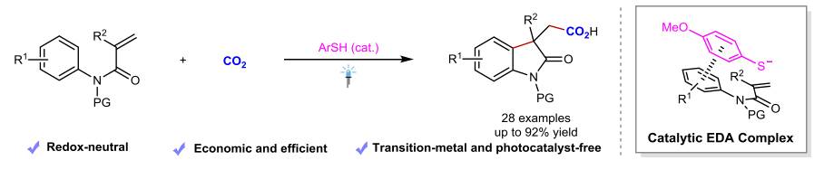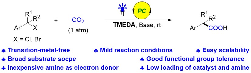 89.Q. Fu, Z.-Y. Bo, J.-H. Ye, T. Ju, H. Huang, L.-L. Liao, D.-G. Yu*, Transition metal-free phosphonocarboxylation of alkenes with carbon dioxide via visible-light photoredox catalysis. Nat. Commun. 2019, 10, 3592.