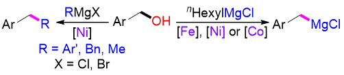 130.D.-G. Yu, X. Wang, R.-Y. Zhu, S. Luo, X.-B. Zhang, B.-Q. Wang, L. Wang, Z.-J. Shi*, Direct Arylation/Alkylation/Magnesiation of Benzyl Alcohols in the Presence of Grignard Reagents via Ni, Fe or Co-Catalyzed sp3 C–O Bond Activation. J. Am. Chem. Soc. 2012, 134, 14638. (Highlighted by Synfacts 2012, 8, 1358)