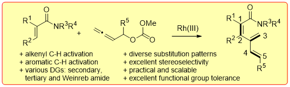 143.H. Wang, B. Beiring, D.-G. Yu, K. Collins, F. Glorius, [3]Dendralene Synthesis: Rhodium(III)-Catalyzed Alkenyl C–H Activation and Coupling Reaction with Allenyl Carbinol Carbonate, Angew. Chem. Int. Ed. 2013, 52, 12430.