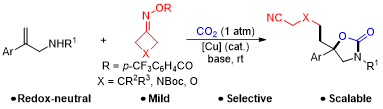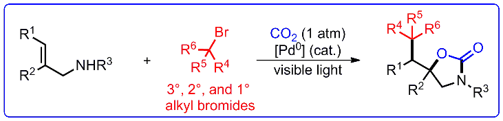 102.L. Sun, J.-H. Ye, W.-J. Zhou*, X. Zeng, D.-G. Yu*, Oxy-Alkylation of Allylamines with Unactivated Alkyl Bromides and CO2 via Visible-Light-Driven Palladium Catalysis. Org. Lett. 2018, 20, 3049. (Top 8 most read papers in May, 2018. Highlighted by CBG.)