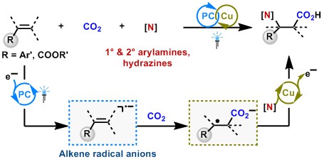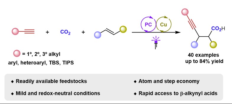 68.T. Ju, Y.-Q. Zhou, K.-G. Cao, Q. Fu, J.-H. Ye, G.-Q. Sun, X.-F. Liu, L. Chen, L.-L. Liao, D.-G. Yu*, Dicarboxylation of alkenes, allenes, and (hetero)arenes with CO2 via visible-light photoredox catalysis. Nat. Catal. 2021, 4, 304–311.