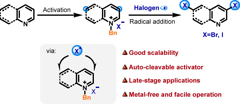 7. Tang, J.; Li, S.; Fu, Y.; Su, Z.; Xu, J.; Xue, W.; Zheng, X.; Li, R.; Chen, H. *; Fu, H. *, Radical meta-C–H Halogenation of Azines via N-Benzyl Activation Strategy. Org. Lett. 2024, 26 (28), 5899-5904.