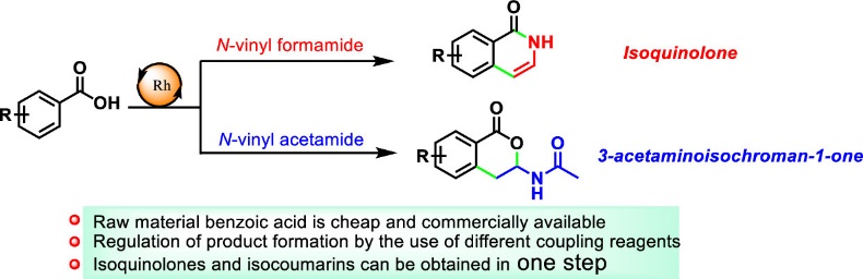 41. Sun, R.; Yang, X.; Li,Q.; Xu,Ke.; Tang,J.; Zheng,X.; Yuan,M.; Fu, H.*; Li, R.; Chen, H.*, Divergent Synthesis of Isoquinolone and Isocoumarin Derivatives by the Annulation of Benzoic Acid with N-Vinyl Amide Org. Lett. 2019, 21, 23, 9425–9429. .//pubs.acs.org/doi/10.1021/acs.orglett.9b03638