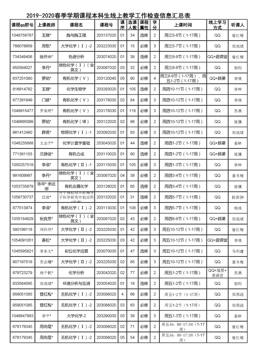 相关通知要求,延迟春季开学返校时间,学院积极响应,做到“停课不停教,停课不停学”。全院师生按照既定的开学时间准时行课,开展网上教学指导与学习。前期学院领导班子通过多次线上党政联席会讨论,并联动教务口、学工口、任课教师摸排参与线上学习有困难学生名单、湖北籍和武汉籍学生,第一时间了解学生实际困难,采取多种模式帮助学生展开线上学习,如任课教师将电子课件以及视频通过QQ或邮件发给学生;同时拟采取任课教师与辅导员互动协调的工作模式,对每门课参与线上学习困难的学生进行询问进行追踪、联系和回访,确保电话、短信、微信和QQ进行答疑顺畅进行。此外,拟为困难学生提供通讯补助,便于通过手机在线学习。