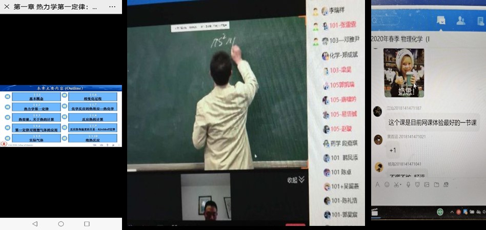 在这个特殊时期,为了保证授课质量,任课教师各显神通。如:童冬梅老师提前录制了在线课程,并分享在学生们喜爱的bilibili平台,运用Camtasia软件对录制课程音效进行后期优化降噪处理。李瑞祥老师在无机化学课堂中采用了录播和直播相结合的模式,让同学们可以更快的融入在线课堂学习。青年教师于立杨讲课风趣,课程设计合理,在线课堂受到了同学们的高度认可。
