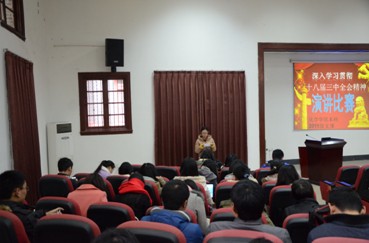 十八届三中全会知识竞赛”、“深入学习贯彻十八届三中全会精神演讲比赛”“深入学习贯彻十八届三中全会精神主题讨论”等一系列活动,使学生对十八届三中全会会议内容有更深入的了解,更进一步深化了学生对党的十八届三中全会精神的理解。