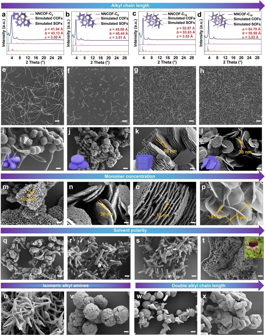 图2 非经典结晶合成的结构相同但形貌不同的NNCOFs