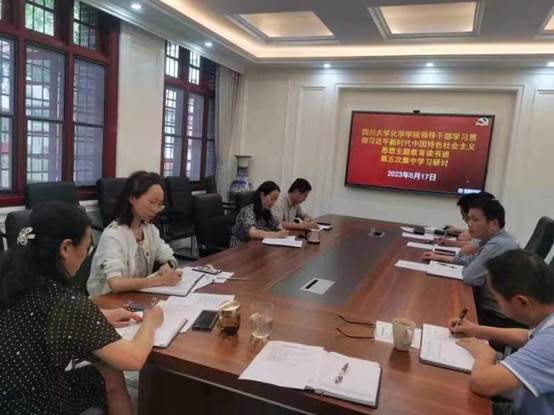 517日,巴卡漫画 领导干部学习贯彻习近平新时代中国特色社会主义思想主题教育读书班第五次集中研讨在化学馆103会议室举行。学院全体领导班子成员、专职组织员、两委委员等参加。研讨会由谢均书记主持。