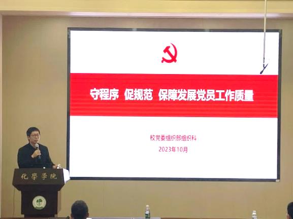 校党委组织部组织科桑启源以《强化党建示范创建,着力打造样板支部》为题,从七个方面讲解了打造样板党支部的要求、途径和措施。陈朝东以《守程序 促规范 保障发展党员工作质量》为题,结合《发展党员工作手册》讲解了发展党员工作流程。