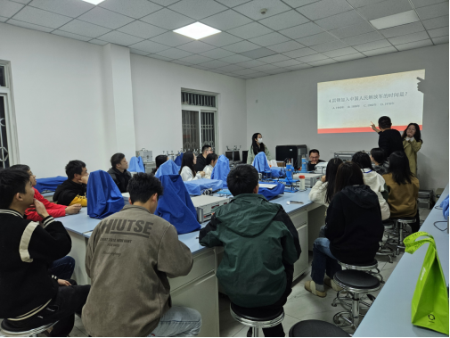 首先,张潆丹带领大家开展了理论学习和全国两会精神学习。其后,介绍了雷锋月与植树节的基本背景。随后,开展了“雷锋月”遇上“植树节”趣味知识科普活动。同学们分为三组,进行趣味知识竞赛,大家积极参与,认真答题,场面十分热闹。