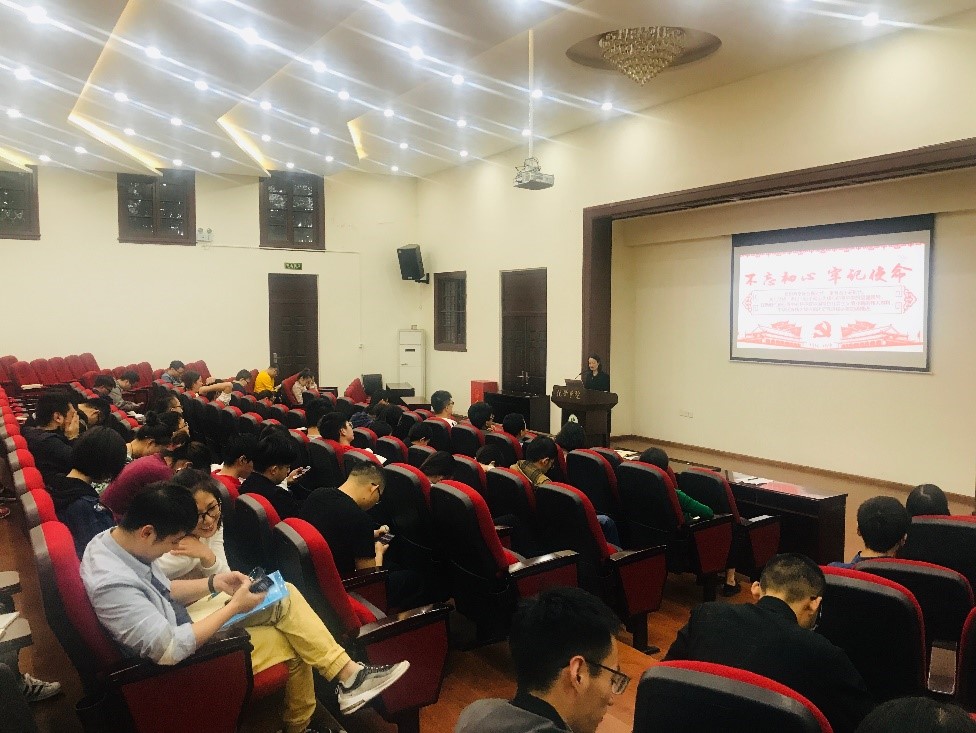 党委副书记谢均同志进行授课,主要内容包括十九大报告解读、开展“不忘初心 牢记使命”主题教育活动的意义、如何做到“不忘初心 牢记使命”三个部分。