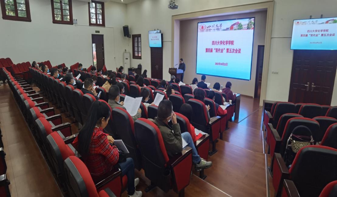 第四届教职工代表大会暨工会代表大会第五次会议在化学馆321报告厅隆重召开。学院领导班子及46名双代会代表出席本次会议,大会由党委书记谢均同志主持。本次大会的主题是:凝心聚力,争创一流,开启“十四五”新篇章。