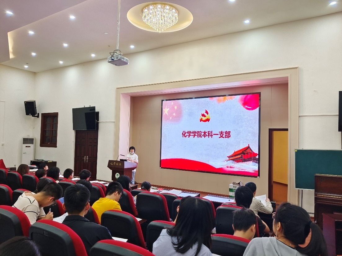 本科一支部在化学馆一楼报告厅召开支部党组织生活,党支部书记张若一主持。