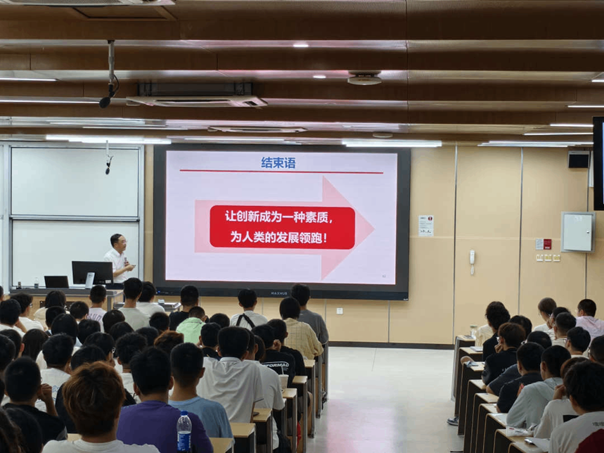 随后,冯小明院士向大家介绍了他的研究领域,通过生活中的广泛事例表明手性化学研究的重要性,并讲述了他通过持续努力使“不对称催化”在中国实现从无到有的突破。冯小明院士通过讲述他的科研成就及其与全球学者的经验交流经历,鼓励同学们要深入钻研,努力学习,表明成功奠定在努力的基础之上,需要目标和理想的引领,并且提出创新人才的内涵与努力方向。