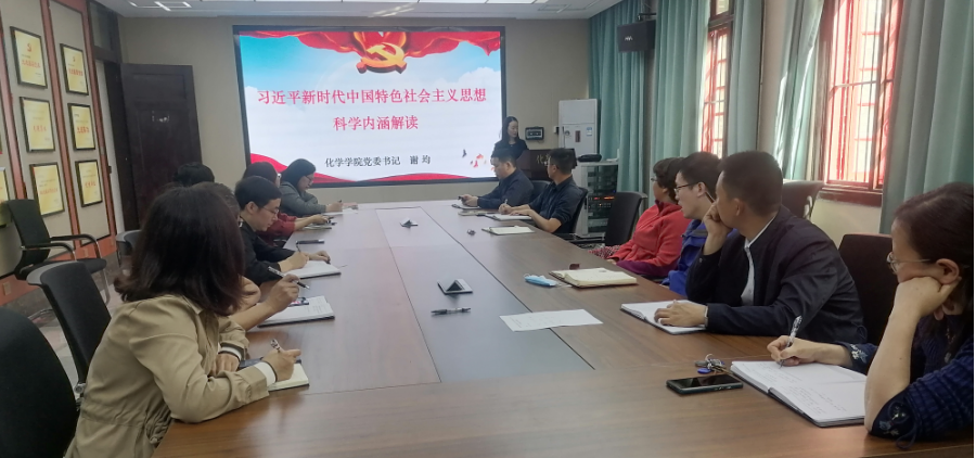 领导干部学习贯彻习近平新时代中国特色社会主义思想主题教育读书班第一次集中研讨在化学馆122会议室举行。全体领导班子成员、专职组织员、两委委员、支部书记代表、学院主题教育工作组成员等参加。研讨会由学院党委书记谢均主持。