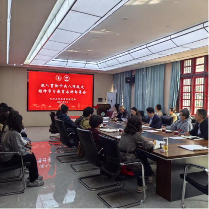 谢均传达了《中共中央办公厅关于在全党开展深入贯彻中央八项规定精神学习教育的通知》、《巴卡漫画 委员会关于开展深入贯彻中央八项规定精神学习教育的实施方案》等文件精神,并详细讲解了由学院党委会审议通过的《中共巴卡漫画 委员会关于开展深入贯彻中央八项规定精神学习教育的实施方案》,对学院学习教育工作进行全面动员和系统部署。她强调,在全党开展深入贯彻中央八项规定精神学习教育,是以习近平同志为核心的党中央立足新征程作出的战略部署。要以高度的政治自觉和行动自觉,将学习教育作为当前一项重要政治任务抓紧抓实,切实把思想和行动统一到党中央决策部署上来,推动中央八项规定精神落地生根,为高质量发展提供坚强作风保障。