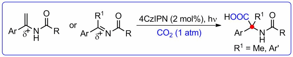 84. T. Ju, Q. Fu, J.-H. Ye, Z. Zhang, L.-L. Liao, S.-S. Yan, X.-Y. Tian, S.-P. Luo, J. Li, D.-G. Yu*, Selective and Catalytic Hydrocarboxylation of Enamides and Imines with CO2 to Generate α,α-Disubstituted α-Amino Acids. Angew. Chem. Int. Ed. 2018, 57, 13897.