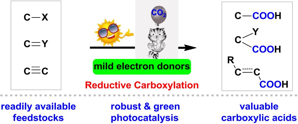 58. T. Ju, Y.-Q. Zhou, K.-G. Cao, Q. Fu, J.-H. Ye, G.-Q. Sun, X.-F. Liu, L. Chen, L.-L. Liao, D.-G. Yu*, Dicarboxylation of alkenes, allenes, and (hetero)arenes with CO2 via visible-light photoredox catalysis. Nat. Catal. 2021, 4, 304–311.