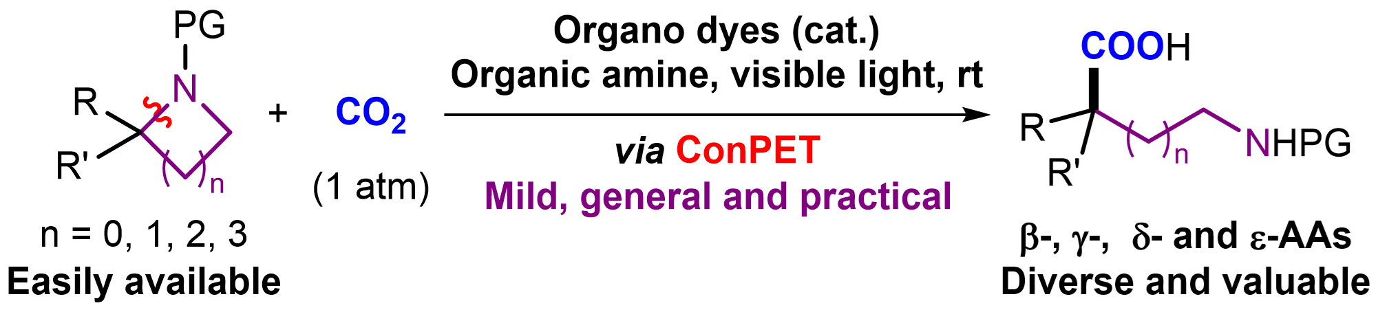 79. Q. Fu, Z.-Y. Bo, J.-H. Ye, T. Ju, H. Huang, L.-L. Liao, D.-G. Yu*, Transition metal-free phosphonocarboxylation of alkenes with carbon dioxide via visible-light photoredox catalysis. Nat. Commun. 2019, 10, 3592.